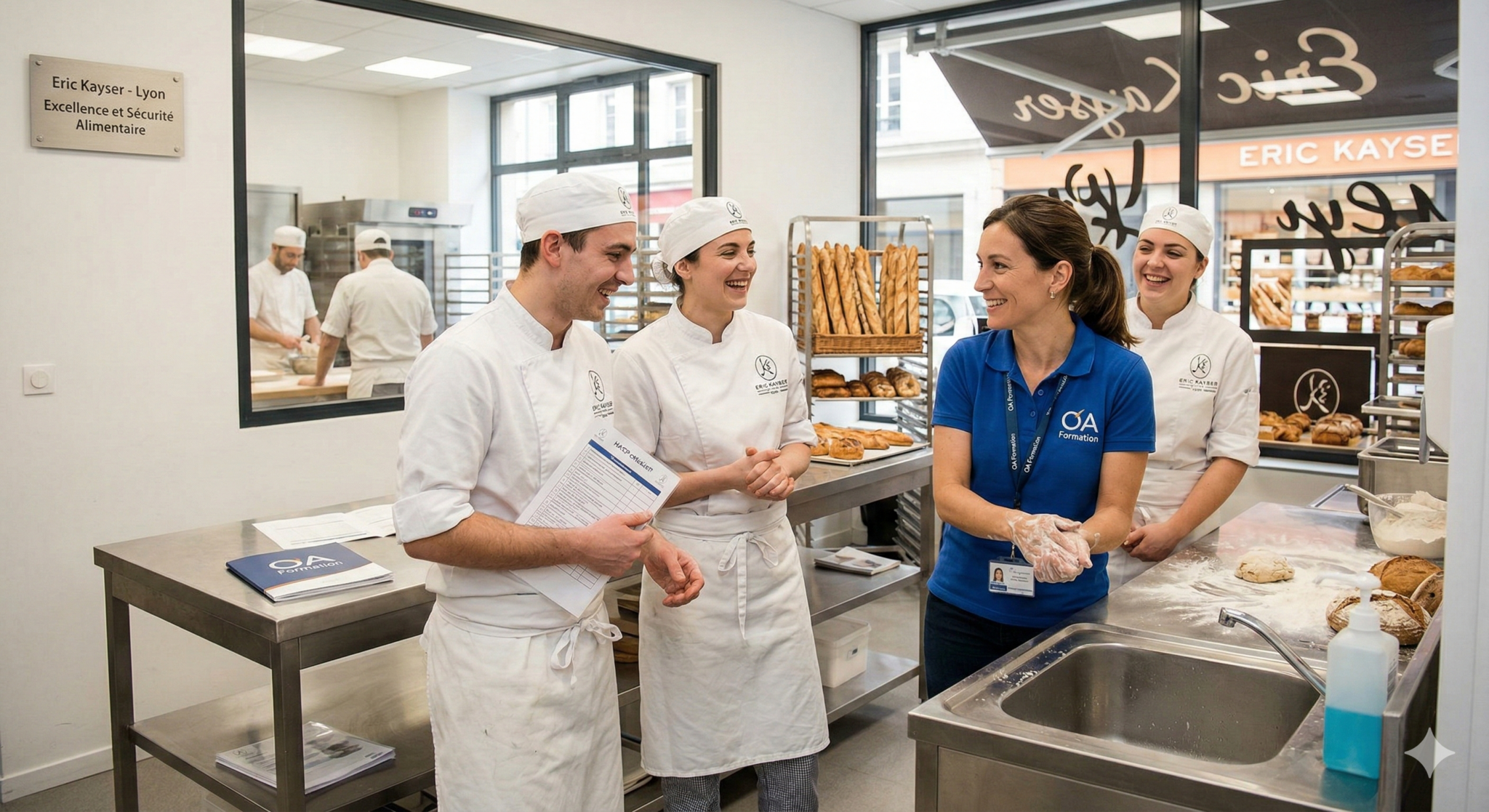Chez OAFormation, nous sommes fiers d’annoncer notre collaboration avec les équipes des Boulangeries Eric Kayser de Lyon. Félicitations à eux pour avoir placé l’excellence sanitaire au cœur de leur engagement artisanal.