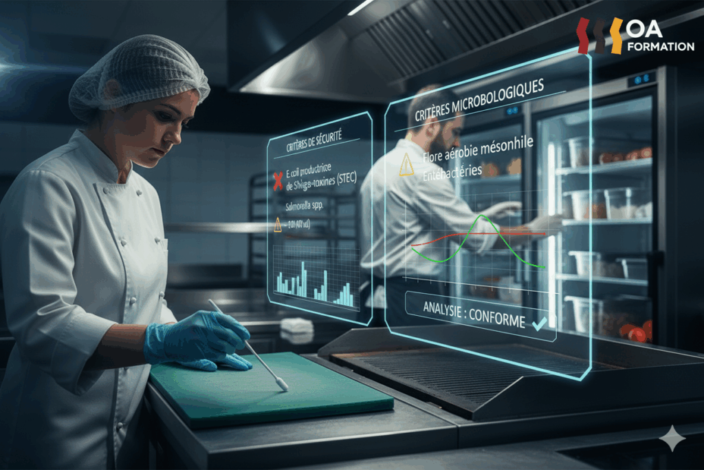 Chez OA Formation, nous démystifions ces analyses. Un critère microbiologique, c’est la norme chiffrée (limites maximales) de micro-organismes (bactéries, levures, moisissures) autorisés dans un produit alimentaire ou sur une surface donnée. Ces critères sont définis par la réglementation européenne (Règlement CE 2073/2005) et sont la référence utilisée par les laboratoires et la DDPP (Direction Départementale de la Protection des Populations) lors des contrôles.