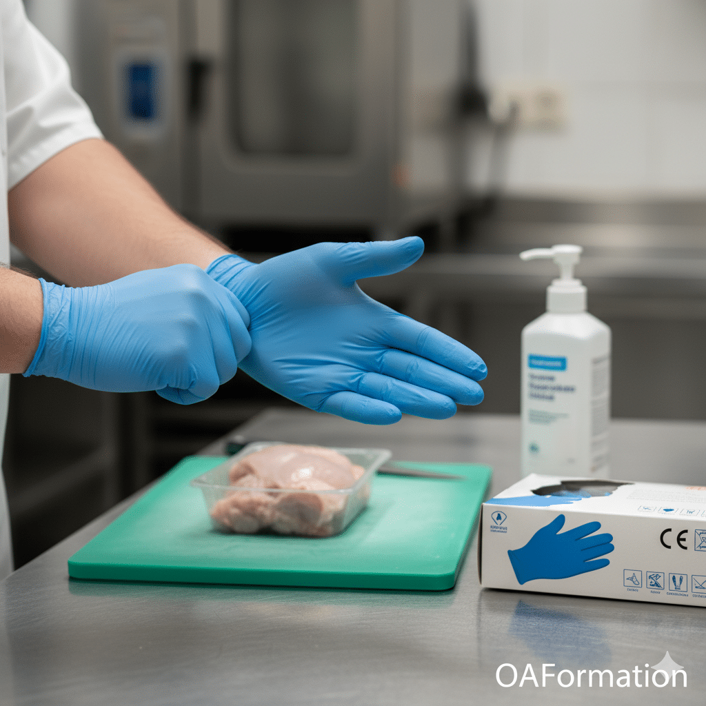 | Action Cruciale | Jeter immédiatement le gant après la fin de la tâche (ex: former les steaks hachés, désosser un poulet) et se laver les mains avant de passer à une autre tâche. |