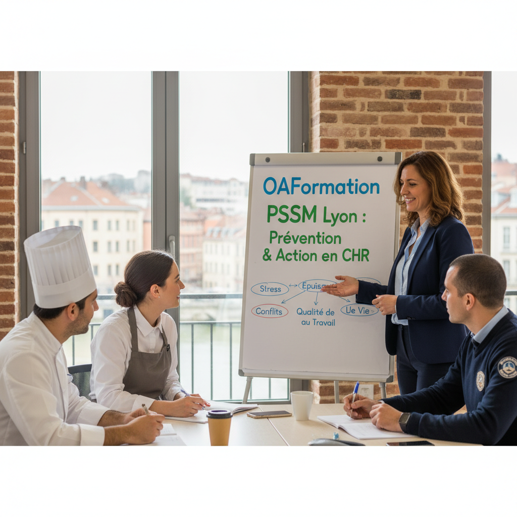 En tant qu’expert PSSM OAF, spécialisé dans l’accompagnement des professionnels lyonnais des CHR et métiers à fort stress, je vous guide vers la solution locale : OAFormation.
