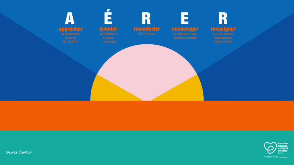 - Aborder : Entamer une conversation d’aide avec une posture d’écoute sans jugement, en rassurant la personne.