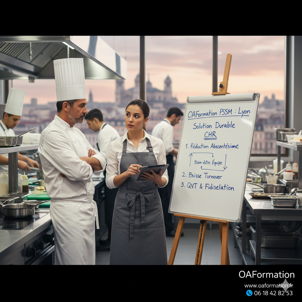 Demandez un devis personnalisé pour votre formation PSSM en CHR à Lyon ou contactez OAFormation au 06 18 42 82 53 pour bâtir une équipe plus stable et épanouie.